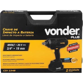 Conteúdo da embalagem: 1 Chave de impacto. Acompanha: 2 baterias 20 V, 1 carregador bivolt automático de bateria e 1 maleta plástica.