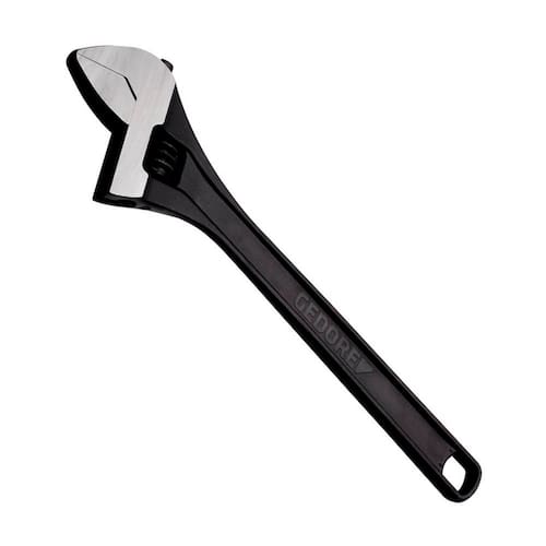 Fabricado em aço Gedore-Vanadium. Acabamento escurecido e cabeça lixada. Tratada termicamente, a chave ajustável oferece alta resistência mecânica, assegurando uma excelente performance por muito mais tempo. Modelo sueco, possui cabeça com inclinação de 15º em relação ao cabo, que garante estabilidade no manuseio. Fornecida em embalagem autosserviço.