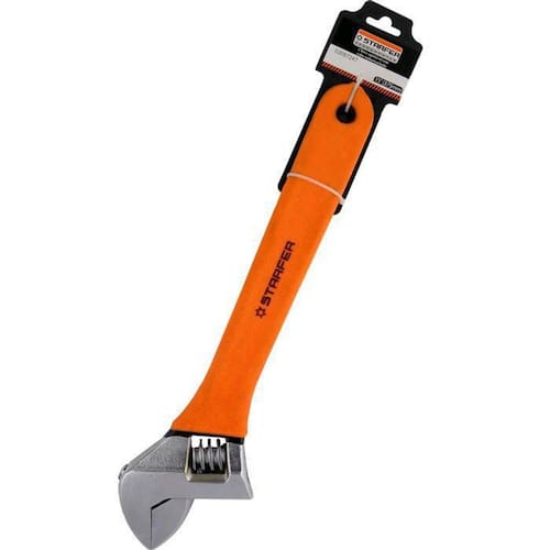 Chave Inglesa Ajustável 15 Polegadas Emborrachada Starfer Chave em aço de carbono para maior resistência e durabilidade, acabamento cromado para maior proteção contra oxidação, mandíbula de fácil ajuste para maior versatilidade e cabo emborrachado com formato anatômico possibilitando maior conforto ao usuário.
