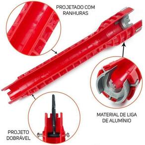 Chave Multifuncional Hidráulica para Lavatório Pia Torneira Aquecedor FlexíveisFabricado em liga de zinco de alta resistência e ABS, design de abertura mais fácilAplicação na desmontagem de engates, banheiro, aquecedor de água e vaso sanitárioA Chave Hidráulica é uma ferramenta multifuncional de uso domestico e profissional para a instalação e manutenção de pias, canos, torneiras, registros, chuveiros , etc.Pode utilizar para desmontagem rápida, parafusar válvulas e fitas do coletor e tubo de entrada de agua do aquecedor. Pode adentrar em locais estreitos.Forjamento de liga de zinco de alta resistência, forte e durável, não deforma.Textura antiderrapante, formato que aumenta o torque.Chave para Porcas 40mm, 34mm, 28mm, 23,5mm, e 21mm,Chave para Porcas PlásticasSistema de NívelExtrator de Rosca QuebradaEspecificações:- Multifuncional, fácil de usar, durável- Comprimento: 25,5 cm/10 ,04 Aprox. - Diâmetro máximo: 5 cm/1 ,97 Aprox. - Garantia de fabricação: 03 meses