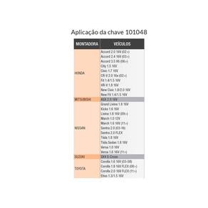 Chave com encaixe de 14 lados e 64,5 mm para filtro de óleo (tradicional e ecológico) de veículos Honda, Toyota e Nissan (vide tabela de aplicação). Abre automaticamente a trava da tampa do filtro ecológico dos veículos Toyota, ao ser encaixada na tampa. Acionamento via encaixe de ½" ou sextavado de 24mm.