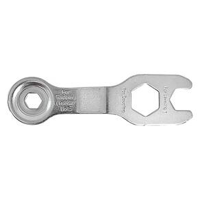 Ferramenta manual, chave de boca de abertura fixa, para fixar e soltar os parafusos utilizados na regulagem do nivelamento da máquina de lavar roupasTipo