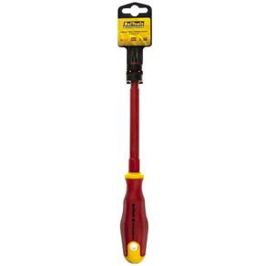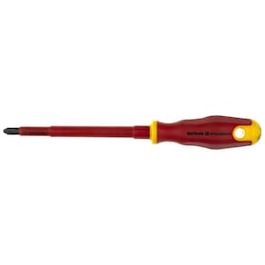 Chave phillips vde 5/16x150mm BeltoolsDescrição:Atende norma internacional EN/IEC 60900:2004. Cabo e haste isolados para 1.000 V. Testada individualmente. Com formato anatômico que proporciona melhor manuseio.Indicação:Indicada para fixar e soltar parafusos de fenda cruzada/phillips. Ideal para atividades em áreas energizadas.Medida da ponta: 5/16"Comprimento da haste: 150mm.Comprimento total: 260mm.Material da haste: Aço cromo vanádio.Acabamento da haste: Haste isolada 1000 V.Material do cabo: Polipropileno revestido com borracha termoplástica.Cor do cabo: Vermelho e amarelo.Marca: BeltoolsCódigo: 60961