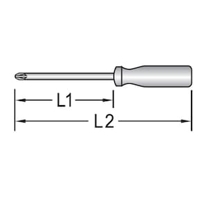 - Chave com haste redonda e resistente, com perfil de encaixe para parafusos tipo fenda cruzada "Phillips".