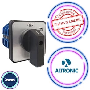 Características técnicas: Marca: altronic; Tensão nominal: 220-240v/ 380-440v; Corrente nominal: 63a; Posições: 2 posições; Tensão nominal de isolamento: 660v; Tipo de interruptor: chave rotativa.