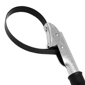 Modelo: Chave Saca Filtro. Material: Aço, Com Cabo Com Proteção em Borracha. Peso Kg : 0,380. Dimensões mm : A 260 mm x L 140 mm. Abertura Mínima: 100mm. Abertura Máxima: 110mm.