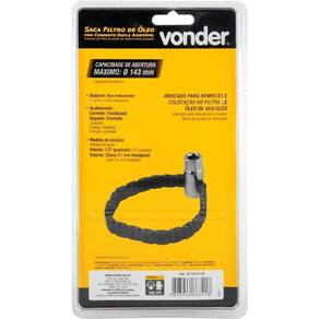 Remova e instale filtros de óleo com facilidade e segurança com a Chave Saca Filtro de Óleo Vonder. Projetada para profissionais e entusiastas automotivos, esta chave oferece uma capacidade de abertura máxima de 143mm, compatível com uma ampla gama de veículos. Fabricada em aço endurecido, garante durabilidade e resistência, mesmo em condições de uso intenso. O acabamento fosfatizado da corrente e o soquete cromado proporcionam proteção contra corrosão e um visual profissional. Com encaixe interno de 1/2'' quadrado e externo hexagonal de 21mm, a chave se adapta a diferentes tipos de catracas e chaves de boca, oferecendo versatilidade e praticidade. Ideal para oficinas mecânicas, centros automotivos e para quem realiza a manutenção do próprio veículo, esta chave saca filtro de óleo Vonder é a ferramenta essencial para um trabalho bem feito.