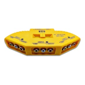 Chave Seletora De Áudio E Vídeo Chaveador Rca + Cabo Av Conecte até 3 aparelhos diferentes com saída RCA áudio e vídeo, evitando o trabalho de desconectar e conectar os cabos todas as vezes que vai alter o aparelho utilizado. Mude o aparelho somente com a Chave Seletora RCA. Indicada para: TV de LCD, Projetor, Vídeo Cassete, Net Digital, XBOX, entre outros equipamentos que possuem entrada RCA.