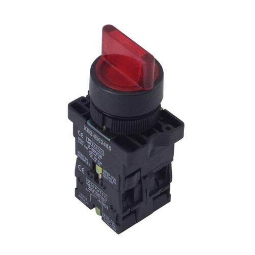 Chave Seletora Iluminada Plástica Modelo XB2 EK3465 3 Posições Vermelho 24Vcc/Vca - com 2NF -