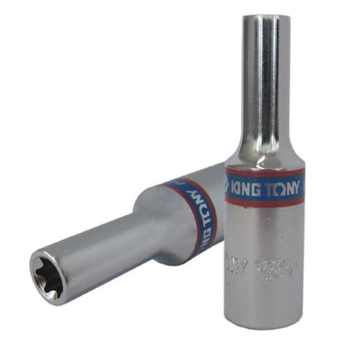 A chave soquete torx ou hexalobular é ideal para parafusos com perfil torx. A mesma consegue transferir mais torque para os parafusos, facilitando a retirada e colocação desse perfil. As chaves soquetes da King Tony são fabricadas em aço cromo vanádio, possuem acabamento cromado e polido, sendo indicada para o aperto e desaperto de parafusos com perfil hexalobular externo de acordo com a norma DIN 3120.