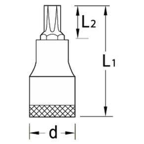 Para trabalhar com acessórios manuais com encaixe quadrado 12,7 mm (1/2), conforme DIN 3120 - C 12.5, ISO 1174. Indicada para parafusos com geometria GTX (perfil hexalobular) interno.