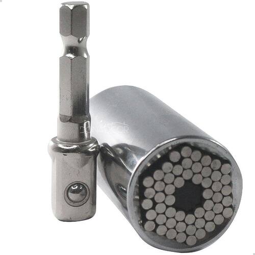 O soquete universal foi projetado para ajustar-se instantaneamente a vários tipos de parafusos e porcas de 7mm a 19mm. Possui 54 hastes de aço que servem para segurar porcas sextavadas, porcas borboleta, porcas quadradas e especialmente porcas quebradas e enferrujadas.