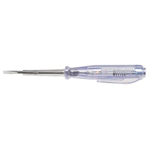 Informações Gerais: - Haste em aço especial temperado. - Acabamento niquelado. - Circuito elétrico ativado através de botão na extremidade do cabo. - Lâmpada de neon. - Apropriada para 80 - 250 V. - As hastes as chaves de fenda são testadas em máquinas de ensaio específicas, para verificar o perfeito balanço entre resistência mecânica e dureza. - Cabos injetados com material de alta resistência. - Os dimensionais das pontas são verificados comgabaritos-padrão, calibrados e certificados. - As ferramentas são produzidas e testadas conforme normas específicas.