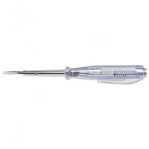 A Chave Teste Tramontina Master com Ponta Chata 1/8x3 Polegadas em Aço Especial é a ferramenta indispensável para garantir mais nas suas tarefas elétricas. Ideal para identificar a presença de corrente em instalações de 80 a 250 V, ela é perfeita tanto para profissionais da construção civil quanto para pequenos reparos domésticos. Sua ponta chata é precisa, e a haste é produzida em aço especial temperado com acabamento niquelado, o que confere resistência e durabilidade ao produto. Com design compacto e funcional, é fácil de manusear e de manter sempre por perto na caixa de ferramentas. Eficiência e com a qualidade Tramontina!