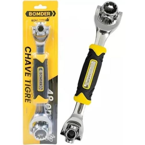 Chave tigre bom-1201 A chave tigre multifincional 48 em 1 oferece um leque diversificado de 48 aplicações distintas. Equipada com duas cabeças ajustáveis, englobando 8 dimensões variadas, que são compatíveis com 6 tipos de fixadores, inclusive aqueles com cabeças danificadas. Sua estrutura viabiliza um movimento de rotação de 360 das cabeças, permitindo a escolha da medida necessária, somada a uma inclinação de até 45 para uma precisão maximizada durante o aperto. Elaborada a partir de aço de alta qualidade, garantindo robustez e longevidade. A adição de uma pegada emborrachada proporciona maior conforto ao usuário e minimiza o risco de quedas acidentais. Informações técnicas: Material: aço inox + punho emborrachado Cabeças rotativas Mais facilidade na manutenção de utensílios diversos; 48 funções em apenas uma ferramenta; Tamanhos dos soquetes: 8mm; 10mm; 11mm; 13mm; 14mm; 16mm; 17mm; 19mm em polegadas: 5/16; 3/8; 7/16; 1/2; 9/16; 5/8; 11/16; 3/4 . Tipos de cabeças: quadradas, pentagonais, hexagonais, anis, dodecagonais. Punho de borracha antiderrapante e fácil de segurar. Itens inclusos: 1x chave tigre multifuncional do vendedor: 90 dias. Marca: Não Informado