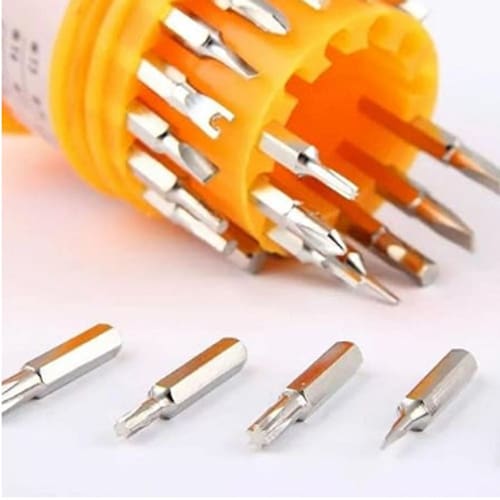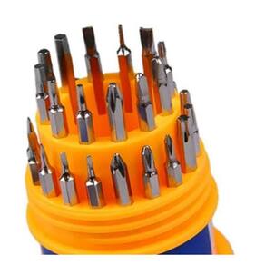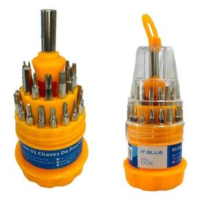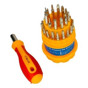 Kit de Chave 31 peças em 1 estojo, possui vários modelos de ponta de chave. Ferramentas:- Cabo para ponta de chave;- Ponta de chave- Chave do tipo Torx;- Chave Phillips;- Chave Fenda;- Chave Allen.