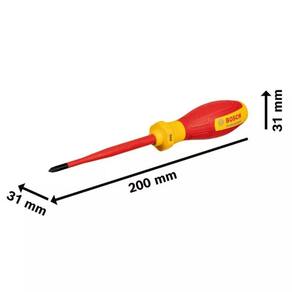 A Chave VDE Phillips PH1 x 100 mm 1600A02NB8000 BOSCH foi desenvolvida para garantir segurança, precisão e conforto em trabalhos profissionais com instalações elétricas. Indicada para apertar e desapertar parafusos do tipo Phillips, esta ferramenta é projetada para oferecer proteção mesmo em situações de contato acidental com partes energizadas, atendendo rigorosamente às normas de segurança aplicáveis.