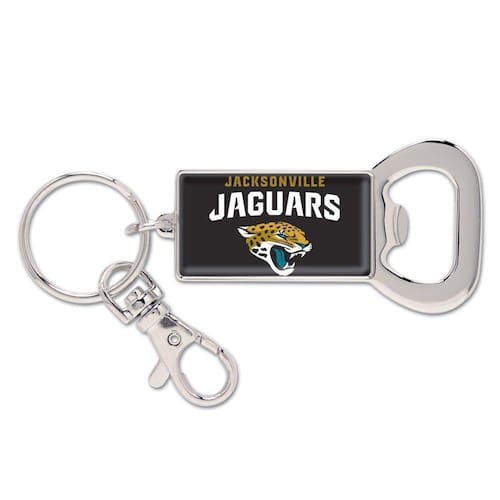 Chaveiro com Abridor de Garrafa JACKSONVILLE JAGUARS - NFL O chaveiro com abridor de garrafas licenciado oficialmente é feito com latão niquelado com decoração e um acessório de garra de lagosta no anel de divisão. Perfeito para decorar e pendurar suas chaves, além de te ajudar a abrir aquela garrafa quando mais for preciso. Tamanho: 8cm x4cm Material: Metal Marca: WinCraft Time: JacksonvilleJaguars Importado e Licenciado Oficialmente pela NFL