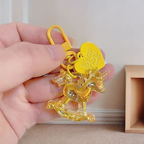 Material: acrílico Tamanho: 3,5* 4 cm, coração 2 cm Peso: 11,5 g Design encantador de unicórnio: este chaveiro apresenta um cavalo de balanço de unicórnio em acrílico transparente, adicionando um toque caprichoso e fofo aos seus acessórios com seu design divertido. Material acrílico durável: feito de acrílico de alta qualidade, este chaveiro é leve e resistente, projetado para suportar o uso diário, mantendo sua aparência adorável. Tamanho perfeito: medindo 3,5 x 4 cm com um pingente de coração de 2 cm, este chaveiro é compacto e fácil de transportar, ideal para prender em chaves, bolsas ou mochilas. Ideal para crianças e fãs de unicórnios: um lindo chaveiro para quem adora unicórnios ou designs divertidos, é um complemento perfeito para qualquer coleção de acessórios divertidos. Leve e elegante: pesando apenas 11,5 g, este lindo chaveiro adiciona estilo e personalidade sem aumentar o volume, tornando-o perfeito para quem gosta de itens exclusivos e decorativos.