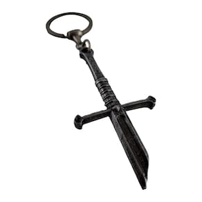 Chaveiro Anduril Quebrada Senhor dos Aneis Apresentamos o Chaveiro Espada Andúril Quebrada, uma réplica em miniatura do lendário artefato do Senhor dos Anéis, feito pela Tenda Medieval em metal cinza. Este chaveiro encantador não é apenas um acessório, mas uma conexão com uma das sagas mais épicas da literatura e do cinema.