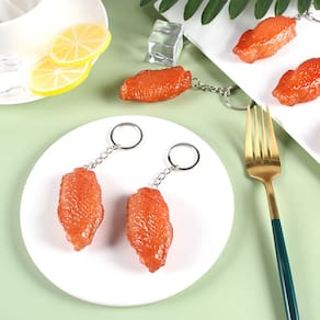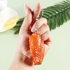Material: PVC Tamanho: 6,5* 3,2 cm Peso: 25,9 G Design realista de asa de frango: apresenta uma asa de frango em miniatura detalhada e realista, projetada para se assemelhar a um delicioso lanche de churrasco com cores e texturas vivas. Material de PVC durável: feito de PVC de alta qualidade, este chaveiro oferece durabilidade duradoura, é leve e mantém sua aparência brilhante ao longo do tempo. Compacto e conveniente: mede 6,5 × 3,2 cm e pesa 25,9 g, facilitando o transporte das chaves, mochila, bolsa ou a fixação em qualquer acessório. Estilo divertido e peculiar: perfeito para entusiastas da comida e para aqueles que amam acessórios exclusivos e engraçados, adicionando personalidade aos seus itens diários. Ótimo para presentear ou colecionar: ideal para amantes de churrasco, gourmets ou qualquer pessoa que goste de acessórios divertidos e criativos inspirados em comida.