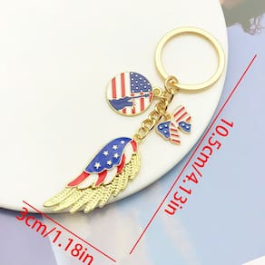 Material: liga de zinco Tamanho: 3* 10,5 cm Peso: 11,5 g Design patriótico: com a bandeira americana com estrelas e listras, este chaveiro inclui um par de asas, um coração e um laço, tornando-o um acessório elegante e simbólico para entusiastas dos EUA. Liga de zinco de alta qualidade: feito de liga de zinco durável, este chaveiro oferece um acabamento polido, permanecendo resistente e duradouro, ideal para uso diário. Perfeito para o Dia da Independência: o design da bandeira americana e as cores patrióticas tornam este chaveiro um acessório perfeito para comemorar o 4 de julho ou mostrar seu orgulho nacional durante todo o ano. Leve e compacto: medindo 3 x 10,5 cm e pesando apenas 11,5 g, este chaveiro é leve, facilitando o transporte de chaves, mochila ou bolsa sem aumentar o volume. Ótimo para amantes dos EUA: seja para você ou como presente, este chaveiro é perfeito para qualquer pessoa apaixonada pelos Estados Unidos, tornando-o um acessório divertido, significativo e decorativo.