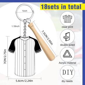Material: acrílico Tamanho: 5,6* 7 cm, bastão 7,5 cm Peso: 50 g Design com tema esportivo: com um design de camisa de beisebol combinado com um mini bastão de madeira e uma borla de couro PU, este chaveiro é perfeito para entusiastas de esportes e fãs de beisebol. Material acrílico durável: feito de acrílico de alta qualidade, este chaveiro é leve e resistente, garantindo um uso duradouro e mantendo uma aparência elegante e vibrante. Perfeito para amantes do beisebol: seja você jogador ou fã, este chaveiro inspirado no beisebol é um acessório divertido e estiloso para mostrar seu amor pelo jogo. Compacto e funcional: medindo 5,6 x 7 cm para a camisa e um bastão de 7,5 cm, este chaveiro é pequeno o suficiente para ser preso a chaves, bolsas ou mochilas sem ocupar muito espaço. Item colecionável exclusivo: a combinação de design esportivo e recursos detalhados torna este chaveiro uma ótima peça colecionável para quem aprecia esportes e acessórios peculiares.