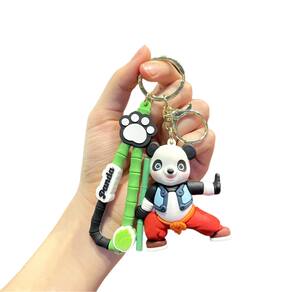 Material: PVC+tamanho do hardware: 3,7* 6,8* 3,1 cm Peso: 51 gCute Panda Design: este chaveiro apresenta um adorável personagem panda em uma pose de kung fu, perfeito para adicionar um toque divertido aos seus acessórios diários. Material de alta qualidade: feito de PVC durável e hardware de metal, este chaveiro é flexível, leve e duradouro. Estilo multiacessório: inclui um pingente de panda, alça de bambu e etiqueta com estampa de pata — um design divertido e criativo que se destaca. Tamanho perfeito: compacto, mas atraente, ideal para pendurar nas chaves do carro, mochilas, bolsas ou como pingente decorativo. Adequado para todas as idades: ótimo para mulheres, homens e crianças que gostam de acessórios divertidos inspirados em desenhos animados com um estilo nacional moderno.