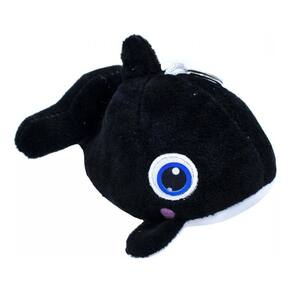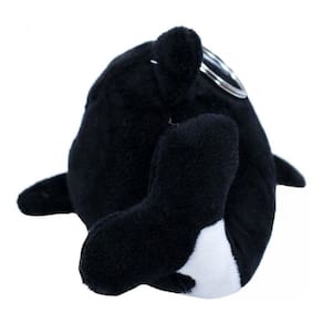 Chaveiro com enfeite de pelúcia em forma de baleia Orca com bochechas rosadas. Material: poliéster; Enchimento: fibra de poliéster Dimensões aproximadas altura 12 cm, largura 13 e comprimento 15 cm com a cauda levantada. Certificado: Produto certificado pelo ICEPEX, Órgão acreditado pela CGCRE do INMETRO.