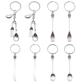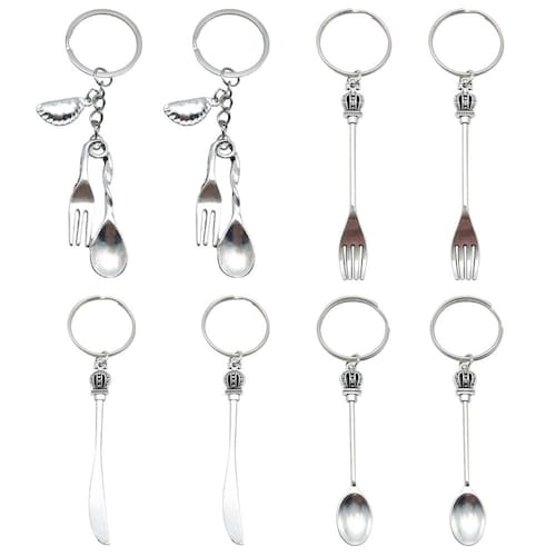• O design criativo de talheres de simulação apresenta pingentes de faca, garfo e colher com elegantes elementos de coroa, tornando este chaveiro um acessório exclusivo e moderno para os amantes da moda diária. • Feito de liga de alta qualidade com superfície lisa polida, este chaveiro oferece excelente durabilidade, textura refinada e resistência ao desgaste, mantendo o brilho mesmo com o uso frequente. • Leve, com apenas 4,6 g, este chaveiro compacto é fácil de transportar sem sobrecarregar, ideal para chaves, mochilas, bolsas ou projetos de decoração DIY. • Perfeito para bolsas de bricolage e acessórios personalizados, este chaveiro de talheres em forma de coroa dá um toque divertido e moderno, ao mesmo tempo que mostra criatividade e personalidade individual. • Uma ótima opção de presente para amigos, casais e entusiastas da moda, este chaveiro combina praticidade e beleza decorativa para organização e estilo diários.