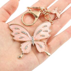 Material: liga de zinco Tamanho: 3* 6 cm Peso: 40 g Design elegante de borboleta: este chaveiro apresenta uma linda borboleta com strass cintilantes, destacada pelas cores rosa suave e pérola para uma aparência feminina e chique. Material de qualidade premium: feito de liga de zinco de alta qualidade, este chaveiro é durável e leve, garantindo um uso duradouro e mantendo seu apelo elegante. Detalhes delicados: o chaveiro inclui um pequeno pingente de borboleta que complementa a borboleta maior, adicionando um toque de beleza intrincada aos seus acessórios. Tamanho perfeito: medindo 3 x 6 cm e pesando 40 g, este chaveiro é ideal para prender em bolsas, bolsas ou chaves do carro sem ser muito volumoso. Acessório de moda versátil: este lindo chaveiro borboleta adiciona um toque de elegância a qualquer bolsa, carteira ou coleção de chaves, tornando-o um acessório elegante e funcional para o uso diário.