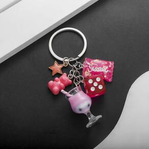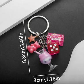 Material: Resina Tamanho: 3* 8,8 cm Peso: 11 g Design extravagante: apresenta pingentes divertidos e vibrantes, como um dado rosa, ursinho de chocolate, copo de bebida e estrela, tornando este chaveiro um acessório divertido e atraente. Resina de alta qualidade: feito de resina durável, este chaveiro é leve (11g) e oferece um acabamento brilhante e suave com cores vibrantes. Perfeito para jovens e pessoas que gostam de se divertir: ideal para quem adora acessórios peculiares e criativos com um toque de cor, especialmente para adolescentes e jovens adultos. Versátil e prático: ótimo para adicionar um toque divertido às mochilas, bolsas ou chaves do carro, tornando-o um acessório exclusivo e funcional para qualquer ocasião. Compacto e leve: medindo 3 x 8,8 cm, este chaveiro é pequeno o suficiente para o uso diário, oferecendo o máximo de estilo.
