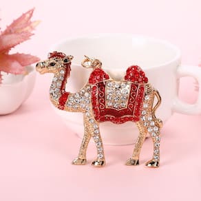 Material: liga. Tamanho: 11* 6,5 cm Peso: 46 g Design elegante em camelo — Inspirado na vida no deserto, este requintado chaveiro de camelo apresenta detalhes intrincados e uma sela vermelha glamorosa adornada com strass. Enfeites de cristal cintilante — Decorados com cristais claros e vermelhos que brilham sob a luz, adicionando luxo e charme aos seus acessórios. Material de liga durável — Feito de liga de alta qualidade com acabamento em tom dourado polido, oferecendo excelente resistência ao desbotamento e à ferrugem. Acessório decorativo versátil — perfeito para chaves, bolsas, carteiras ou mochilas; aprimora seu estilo com uma estética exótica e elegante. Perfeito para todas as ocasiões — Um acessório chique adequado para mulheres e homens que apreciam joias com temas de animais e chaveiros decorativos.