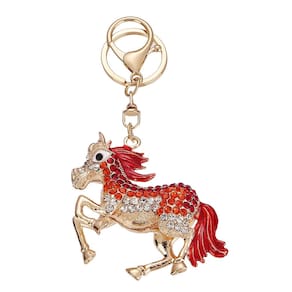 Material: liga de zinco Tamanho: 6* 7 cm Peso: 75 g Design elegante de cavalos — Inspirado na elegância de um cavalo de corrida, simbolizando liberdade e energia, perfeito para amantes de animais e moda. Acabamento em strass cintilante — Decorado com cristais deslumbrantes e detalhes em esmalte vermelho, criando uma aparência vívida e luxuosa que chama a atenção de todos. Material de liga durável — Feito de liga de zinco premium com um revestimento dourado para maior resistência, brilho e desgaste duradouro. Acessório versátil — Ideal para decorar chaves de carros, bolsas, mochilas ou bolsas, aprimorando seu estilo diário com um toque de charme. Leve e elegante — Compacto, mas atraente, adequado para mulheres, homens e adolescentes que gostam de designs criativos e sofisticados de chaveiros.