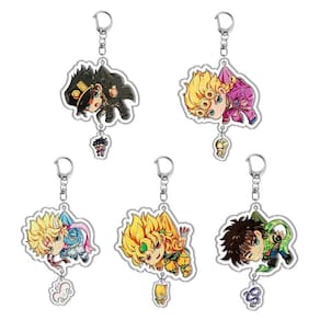 • Feito de acrílico premium de dupla camada com impressão brilhante de alta definição, este chaveiro oferece bordas lisas, forte durabilidade e resistência a arranhões ou desbotamento para uso diário. • Apresenta lindas versões chibi de Jonathan Joestar, Dio Brando, Joseph Joestar, Jotaro Kujo e Giorno Giovanna da JoJo's Bizarre Adventure, perfeitas para fãs e colecionadores. • O design leve e compacto de chaveiro se encaixa facilmente em chaves, mochilas, bolsas, carteiras ou capas de telefone, adicionando uma decoração elegante de anime sem peso ou volume extra. • Equipado com chaveiro de metal resistente e um fecho de lagosta seguro que se encaixa com firmeza e evita que caiam, garantindo que suas chaves e pingentes permaneçam seguros durante a viagem ou o transporte diário. • Presente ideal para amantes de anime, adolescentes e amigos, ótimo para aniversários, feriados, festas ou convenções e um divertido acessório colecionável para exibição pessoal ou roupas de cosplay.