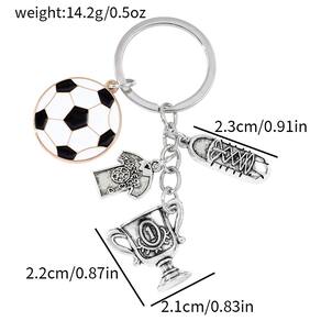 Material: liga de zinco Tamanho: 2,1* 2,2 cm; 2,3 cm Peso: 14,2 g Chaveiro para amantes do futebol: este chaveiro exclusivo apresenta uma bola de futebol, chuteira de futebol e pingentes de troféu, tornando-o o acessório perfeito para fãs do esporte. Liga de zinco premium: feito com liga de zinco durável, este chaveiro oferece um acabamento elegante e de alta qualidade que é ao mesmo tempo estiloso e duradouro. Compacto e leve: medindo apenas 2,1* 2,2 cm, é o tamanho perfeito para prender em bolsas, chaves ou mochilas sem aumentar o volume. Ideal para fãs de futebol: um ótimo acessório para qualquer pessoa apaixonada por futebol, seja para uso diário ou para iniciar uma conversa divertida no jogo. Versátil e divertido: o design colorido adiciona um toque divertido ao seu chaveiro, bolsa ou mochila, tornando-o um presente ideal para entusiastas do futebol.