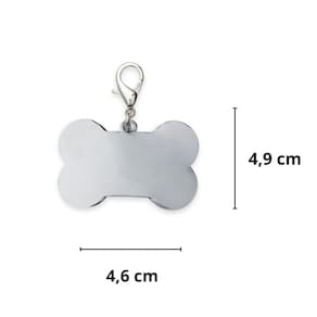 Descrição: chaveiro metálico de identificação para pets, dimensão 4,6 x 3 cm. Acompanha gancho.