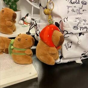 Chaveiro de Pelúcia Adorável- Capivara com Toca de Morango Chaveiro de Pelúcia Adorável- Capivara com Toca de Morango