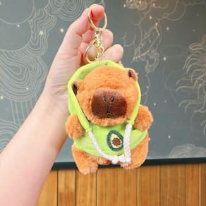 Material: pelúcia, tamanho do hardware: 9* 13* 7 cm Peso: 51 g Adorável moletom com capivara Design: apresenta uma capivara marrom macia vestindo um capuz verde, adicionando um toque aconchegante e moderno aos seus acessórios. Material de pelúcia de alta qualidade: feito de pelúcia ultramacia e liga metálica, confortável ao toque e durável para uso duradouro. Fofo e leve: o boneco fofo de pelúcia é fofo e compacto, facilitando o transporte sem aumentar o volume das chaves ou da bolsa. Chaveiro de metal seguro: equipado com um fecho e anel resistentes para fixação rápida nas chaves do carro, bolsas ou mochilas escolares. Perfeito para uso diário: ideal para mulheres, meninas e adolescentes que adoram acessórios de pelúcia fofos que mostram uma personalidade divertida e divertida.