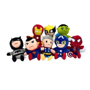 Personagens Variados: Capitão América, Homem de Ferro, Thor, Hulk, e outros. Tamanho: 15 cm de altura. Material: Pelúcia macia com enchimento de algodão PP. Peso Aproximado: 70 g. Idade Recomendada: A partir de 3 anos. Detalhes: Alta qualidade com acabamento fiel aos personagens da Marvel.