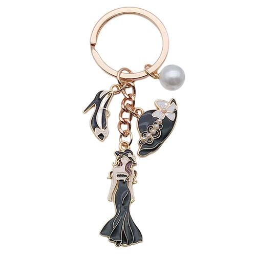 Material: liga de zinco Tamanho: 3* 9,3 cm Peso: 10,8 g Design de moda chique: apresenta uma mulher estilosa em um vestido de noite preto com chapéu combinando e pingentes de salto alto, representando elegância e sofisticação clássicas. Material de liga premium: feito de liga de zinco durável com revestimento de esmalte fino e detalhes em pérolas, garantindo uma aparência brilhante e duradoura. Elegante e versátil: perfeito para prender às chaves do carro, bolsas, mochilas ou carteiras, aprimorando seus acessórios com um toque luxuoso. Leve e compacto: projetado para facilitar o transporte e o uso, ideal para mulheres que apreciam acessórios delicados e refinados. Artesanato requintado: combina acabamento dourado com elementos de moda detalhados para um estilo feminino moderno e atemporal.