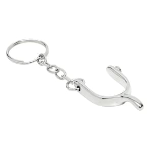 Chaveiro Rodeo West modelo Espora fabricado em metal com corrente e argola.