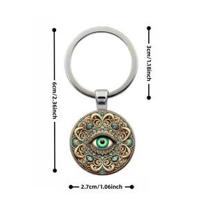 Material: Metal Tamanho: 2,7* 6 cm Peso: 15 g Design de olhos místicos: apresenta um padrão detalhado de mandala com um centro azul vívido dos olhos, simbolizando proteção e energia positiva. Artesanato em metal de alta qualidade: feito de liga metálica durável, resistente à ferrugem e ao desbotamento, mantendo seus detalhes intrincados. Compacto e leve: medindo 6 × 2,7 cm e pesando apenas 15 g, ideal para uso diário em chaves, bolsas ou mochilas. Artístico e simbólico: combina elementos boêmios e espirituais, adequados para quem aprecia acessórios significativos com um toque artístico. Uso versátil: perfeito como um elegante organizador de chaves ou como um pingente decorativo para seu carro, bolsa ou espaço doméstico.