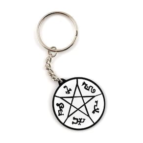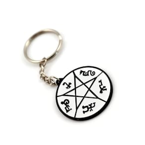 - Símbolo místico: este chaveiro apresenta o design de armadilha do diabo, um símbolo místico utilizado para imobilizar e controlar demônios.