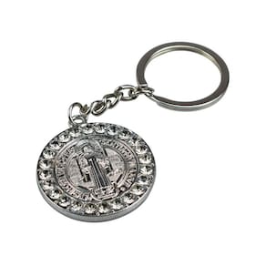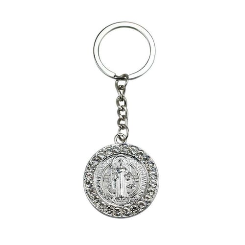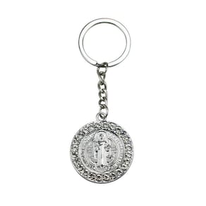Chaveiro Medalhão São Bento Prateado e Dourado 3.5cmChaveiro Medalhão São Bento Prateado e Dourado 3.5cmChaveiro com enfeite na imagem do medalhão de São Bento com 3,5cm de diâmetro na cor prateada e dourada. Detalhes:Peso: 0,030 gramas;Altura: 12cm;Largura: 0,5cm;Comprimento: 5,5cm;Material: Metal.