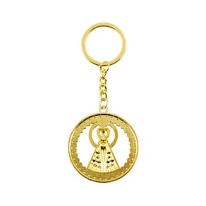 Chaveiro Nossa Senhora Aparecida Aura Circular Dourada ou Prateada 4.7cmChaveiro Nossa Senhora Aparecida Aura Circular Dourada ou Prateado 4.7cmChaveiro de metal com enfeite na imagem de Nossa Senhora Aparecida com uma aura circular na cor dourada ou prateada com 4.7 cm. Detalhes:Peso: 20 gramas;Altura: 12cm;Largura: 4.7cm;Material: Metal.