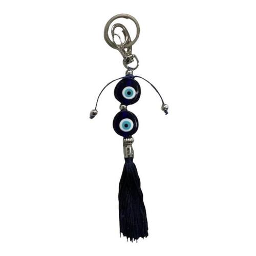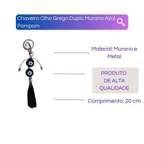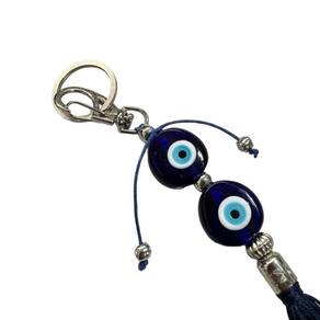 Chaveiro Olho Grego Duplo Murano Azul Pompom - Único