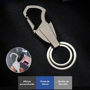 Praticidade, estilo e funcionalidade em um único acessório O chaveiro mosquetão multimarcas é feito em metal resistente com acabamento na cor grafite, oferecendo durabilidade e um visual moderno. Com design inteligente, conta com abridor de garrafa integrado e gravação a laser de alta qualidade. Ideal para carregar suas chaves com segurança e ainda ser útil no dia a dia.