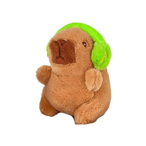 Design exclusivo de capivara com fones verdes, cheio de personalidade.