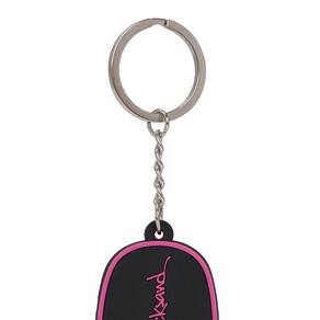 O chaveiro Quicksand é uma replica de uma raquete de beach tennis\n - Material: Borracha;- Detalhamento: Chaveiro em formato de raquete de Beach tennis, tamanho mini na cor preta e rosa, marca Quicksand em cor contrastante. Ideal para carregar as chaves ou colocar no zíper da raqueteira;- Garantia do fabricante: Contra defeito de fabricação;- Origem: Importado.\n